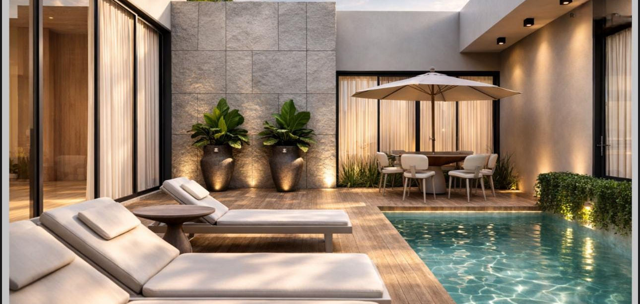 Piscina aquecida integrada com sauna
